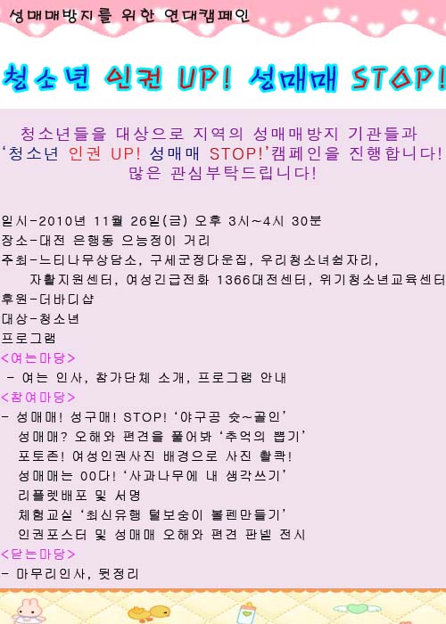 û¼Ò³â À뱂 UP! ¼º¸Å¸Å STOP! ¿¬´ëÄ·ÆäÀÎÀ» ÁøÇàÇÕ´Ï´Ù.