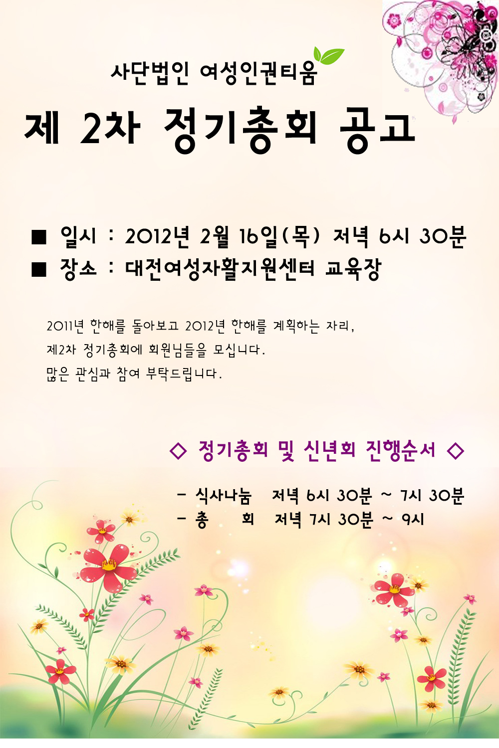 »ç) ¿©¼ºÀÎ±ÇÆ¼¿ò Á¦ 2Â÷ Á¤±âÃÑȸ °ø°í