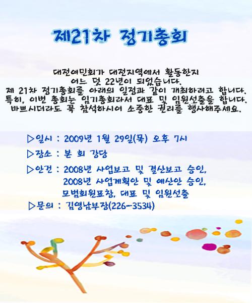 (»ç)´ëÀü¿©¹Îȸ Á¦21Â÷ Á¤±âÃÑȸ¸¦ °³ÃÖÇÕ´Ï´Ù.