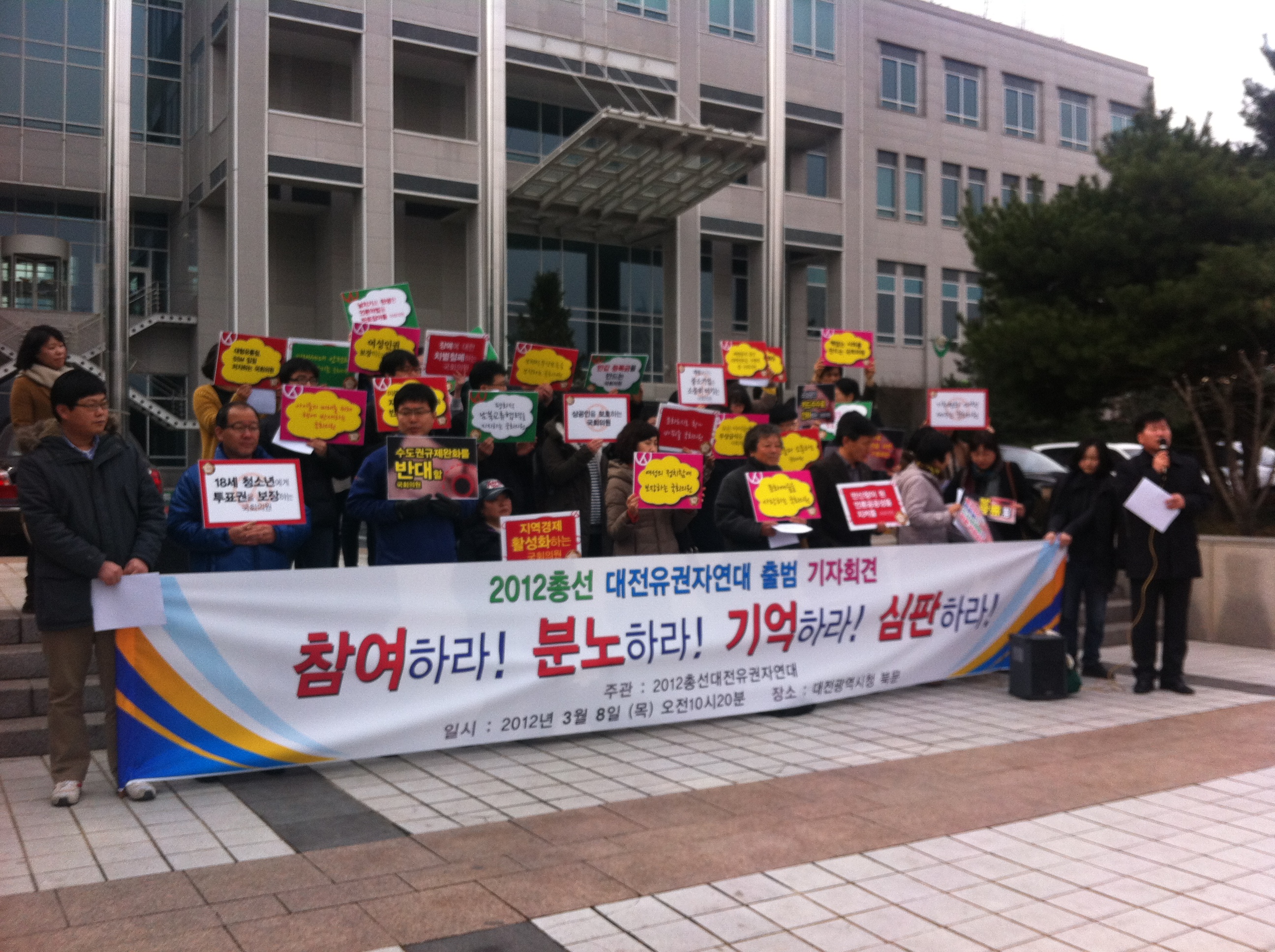 <2012ÃѼ± ´ëÀüÀ¯±ÇÀÚ¿¬´ë À¯±ÇÀÚÀ§¿øÈ¸>Ȱµ¿ÀÇ Àǹ̴ ´ëÀüÁö¿ª¿¡¼´Â óÀ½À¸·Î ½ÃµµÇÏ´Â ¹æ½ÄÀ¸·Î À¯±ÇÀÚµéÀÇ Á¤Ã¥¼±È£µµ¸¦ È®ÀÎÇϰí À¯±ÇÀÚ Âü¿©·Î ÃѼ±¿¡¼ÀÇ °¡Àå ½Ã±ÞÇÏ°í °ø°ø¼º¿¡ ±âÃÊÇÑ °ø¾àÀ» ¼±Á¤Çϴµ¥ Àǹ̰¡ ÀÖ´Ù.