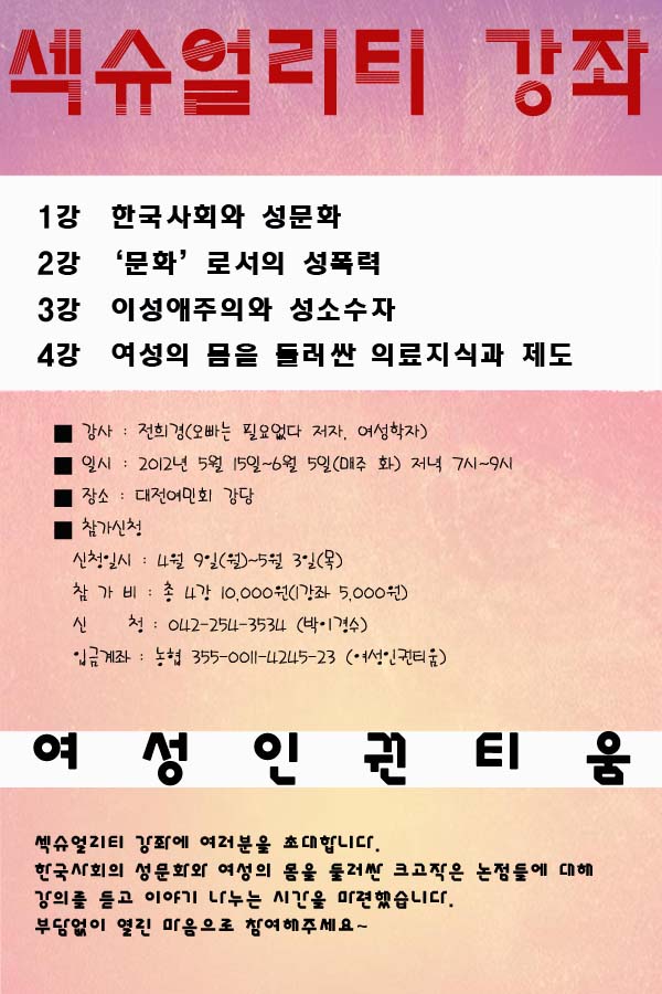 ¿©¼ºÀÎ±ÇÆ¼¿ò°ú ÇÔ²²ÇÏ´Â ¼½½´¾ó¸®Æ¼ °ÁÂ!