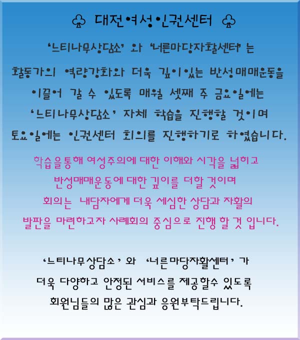 ´ëÀü¿©¼ºÀαǼ¾ÅÍ ÇнÀ°ú ÀαǼ¾ÅÍȸÀǸ¦ ÁøÇàÇÕ´Ï´Ù.