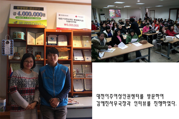´ëÀüÀÌÁÖ¿©¼ºÀαǼ¾ÅÍ ±è¾ÖÁø »ç¹«±¹Àå°ú 11¿ù 27ÀÏ(È) ¿ÀÈÄ 2½Ã, ´ëÀüÀÌÁÖ¿©¼ºÀαǼ¾ÅÍ »ç¹«½Ç¿¡¼ ÀÎÅͺ並 ÁøÇàÇß´Ù. ´ëÀüÀÌÁÖ¿©¼ºÀαǼ¾ÅÍ´Â ´ëÀü ÀÌÁֿܱ¹ÀÎ Á¾ÇÕº¹Áö°ü ºÎ¼³±â°üÀ¸·Î ±è¾ÖÁø »ç¹«±¹ÀåÀÌ ÀÌÁÖ¿©¼ºÀαǼ¾ÅÍ »ç¾÷À» ÁøÇàÇϰí ÀÖ´Ù.
