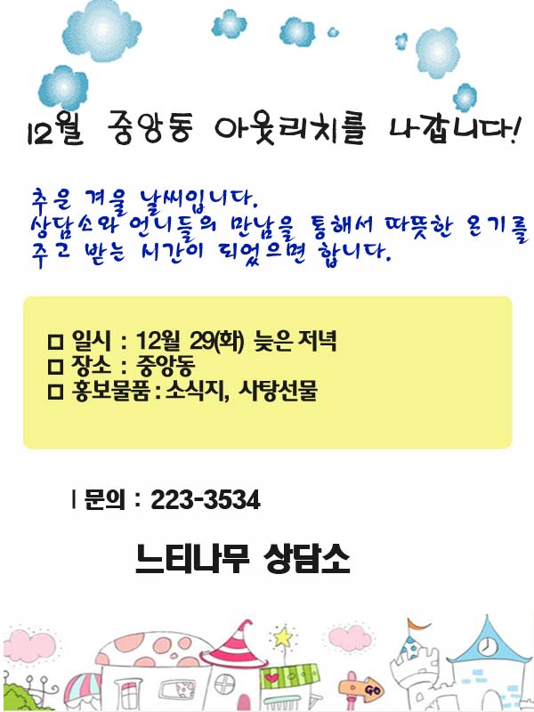 12¿ù Áß¾Óµ¿ ¾Æ¿ô¸®Ä¡¸¦ ³ª°©´Ï´Ù~!
