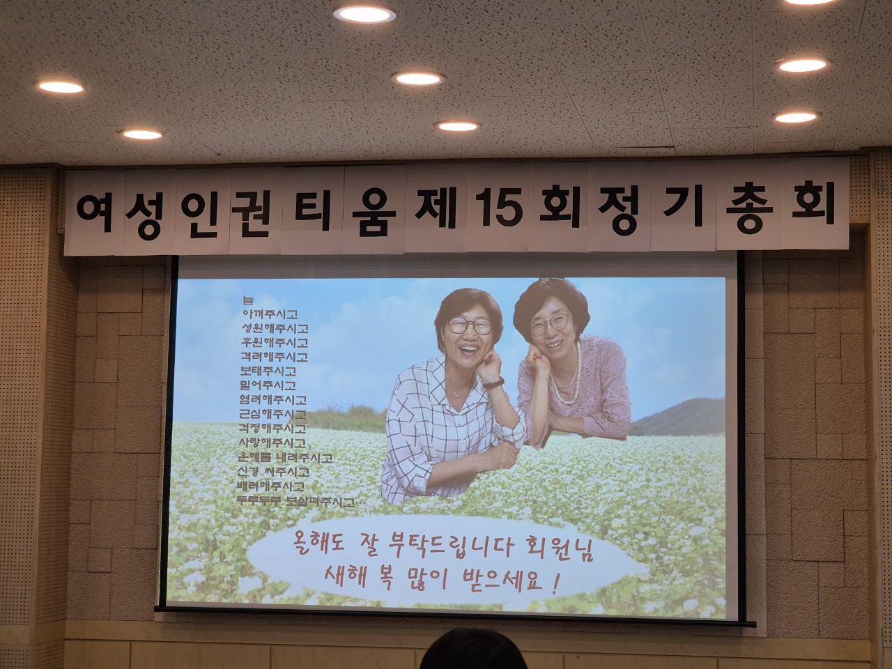 2025³â 1¿ù 21ÀÏ È­¿äÀÏ ¿ÀÈÄ 7½Ã ºóµé±³È¸¿¡¼­ ¡°¿©¼ºÀÎ±ÇÆ¼¿ò Á¦15Â÷ Á¤±âÃÑȸ¡±°¡ ÁøÇàµÇ¾ú½À´Ï´Ù. ¹Ù»Ú½Å ¿ÍÁß¿¡µµ ½Ã°£À» ³»¾î ÃÑȸ ÀÚ¸®¸¦ ºû³»ÁֽŠÂü¼®Àںеé°ú, ¸¶À½À¸·Î³ª¸¶ ÀÀ¿øÀ» º¸³»ÁֽЏðµç ºÐµé °¨»çÇÕ´Ï´Ù.