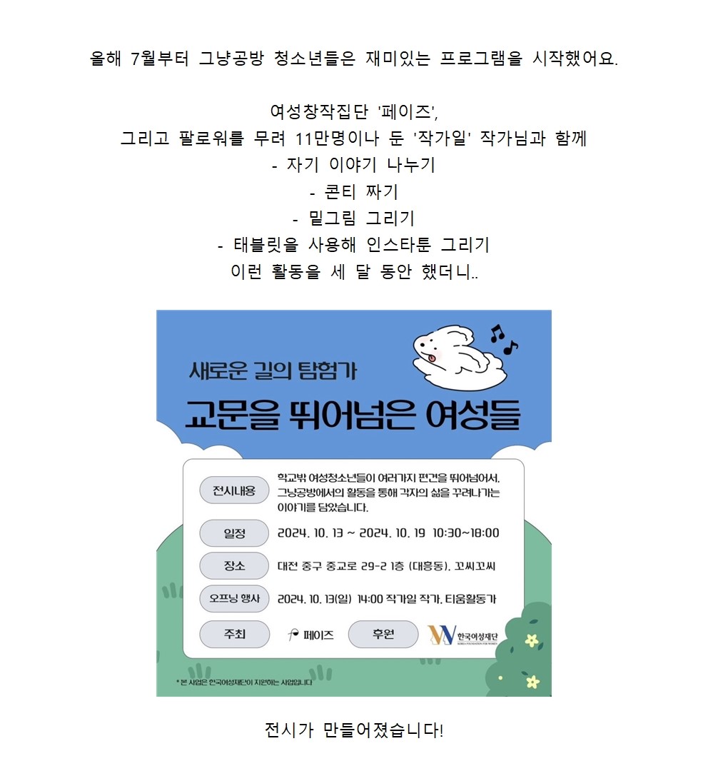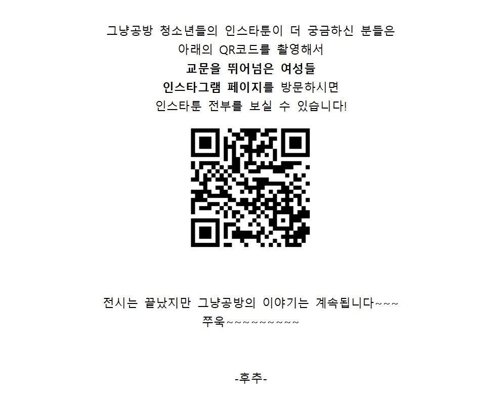 [û¼Ò³âÅëÇÕÁö¿ø] ±×³É°ø¹æXÆäÀÌÁî ÀνºÅ¸Å÷ Á¦ÀÛ ÇÁ·ÎÁ§Æ® <±³¹®À» ¶Ù¾î³ÑÀº ¿©¼ºµé> Àü½Ã¸¦ ¿´Ù!