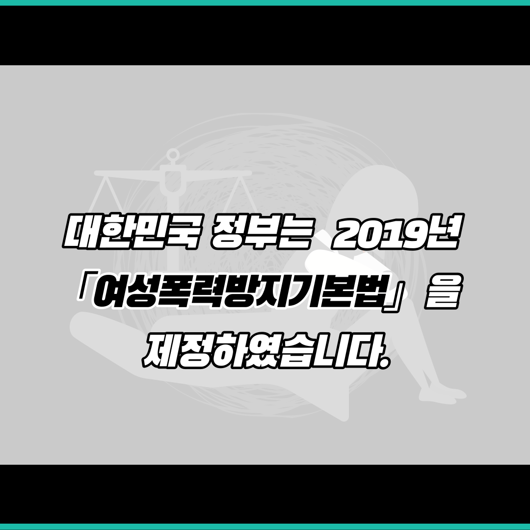 ´ëÇѹα¹ Á¤ºÎ´Â  2019³â ¡¸¿©¼ºÆø·Â¹æÁö±âº»¹ý¡¹À» Á¦Á¤ÇÏ¿´½À´Ï´Ù.