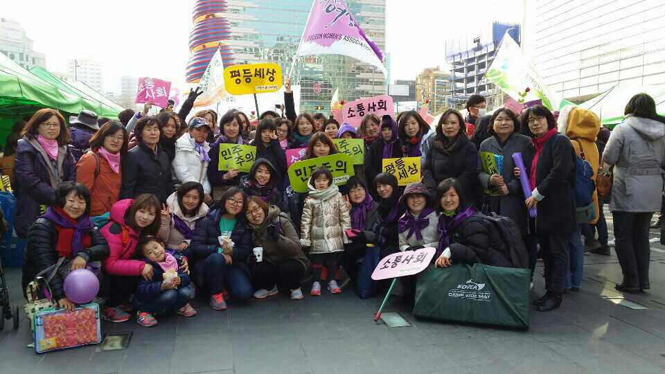 Çѱ¹¿©¼º´Üü¿¬ÇÕÀÌ 1987³âºÎÅÍ ÁÖ°üÇØ¿Â Çѱ¹¿©¼º´ëȸ´Â ¿ÃÇØ·Î 30ȸ¸¦ ¸Â¾Ò½À´Ï´Ù. ¿ÃÇØÀÇ 3.8¼¼°è¿©¼ºÀdz¯ÀÇ ½½·Î°Ç <2014 Á¡ÇÁ ¶Ù¾î¿Ã¶ó Èñ¸ÁÀ» ãÀÚ!> ¡°¹ÎÁÖÁÖÀÇ¡± ¡°Æòµî¼¼»ó¡± ¡°¼ÒÅë»çȸ¡±¸¦ À§ÇÑ ¸ñ¼Ò¸®¸¦ Èû²¯ ³»¾ú´ä´Ï´Ù. Àü±¹¿¡¼ ¸ðÀÎ ¿©¼º´Üü ȸ¿ø ¹× ¿©¼º・½Ã¹Î 1,500¿© ¸íÀÌ Ã»°è±¤Àå¿¡¼ ¼¿ï±¤ÀåÀ» µ¹¾Æ ´Ù½Ã û°è±¤ÀåÀ¸·Î ÇàÁøÇÏ¿´°í, ±â³ä½Ä¿¡¼´Â ¹Ð¾ç ¼ÛÀüž °Ç¼³ ¹Ý´ë ÅõÀïÀ» ÇØ¿Â ÇҸӴϵ鿡°Ô(Àϸí '¹Ð¾çÇҸŵé') ¿ÃÇØÀÇ ¿©¼º¿îµ¿»óÀ» ½Ã»óÇß½À´Ï´Ù.