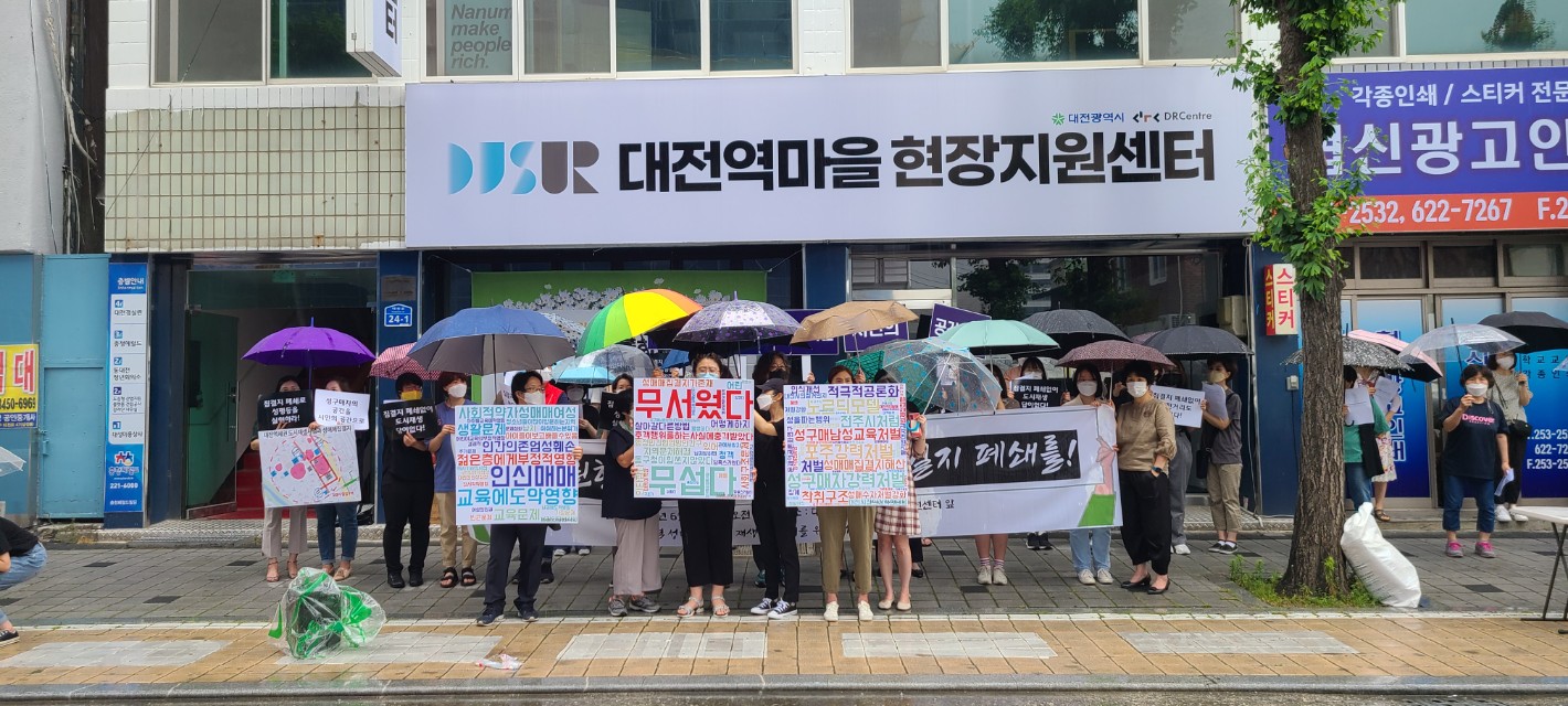 ¿À´Ã ¿ÀÀü 11½Ã ´ëÀü¿ª µµ½ÃÀç»ýÇöÀåÁö¿ø¼¾ÅÍ ¾Õ¿¡¼ ´ëÀü¿ª ¼º¸Å¸ÅÁý°áÁö Æó¼â ¹× Àç»ýÀ» À§ÇÑ ´ëÀü½Ã¹Î¿¬´ë°¡ ÁÖÃÖ/ÁÖ°üÇÑ ±âÀÚȸ°ßÀÌ ÁøÇàµÇ¾ú½À´Ï´Ù. ¸¼¾Ò´ø Çϴÿ¡ ºñ°¡ ÇÑ µÎ ¹æ¿ï¾¿ ¶³¾îÁö´õ´Ï À̳» Æø¿ìó·³ ½ñ¾ÆÁö´Â ¿ÍÁß¿¡¼µµ ¸¹Àº ºÐµéÀÌ ÇÔ²² ÇØÁּ̽À´Ï´Ù. À̹ø ±âÀÚȸ°ßÀº ´ëÀü¿ª Áý°áÁö¿¡ ´ëÇÑ ½Ã¹ÎÀνÄÁ¶»ç °á°ú ¹ßÇ¥ ¹× ´ëÀü½ÃÀÇ Æó¼â ´ë¾È ¼ö¸³ ¹× ½ÇÇà Ã˱¸¸¦ À§ÇÑ ÀÚ¸®¿´´Ù´Â Á¡¿¡¼ Àǹ̰¡ Å®´Ï´Ù. ¾ÕÀ¸·Îµµ ½Ã¹Î¿¬´ëÀÇ È°µ¿À» À̾îÁú ¿¹Á¤ÀÔ´Ï´Ù. ¸¹Àº °ü½É°ú µ¿Âü ¹Ù¶ø´Ï´Ù.