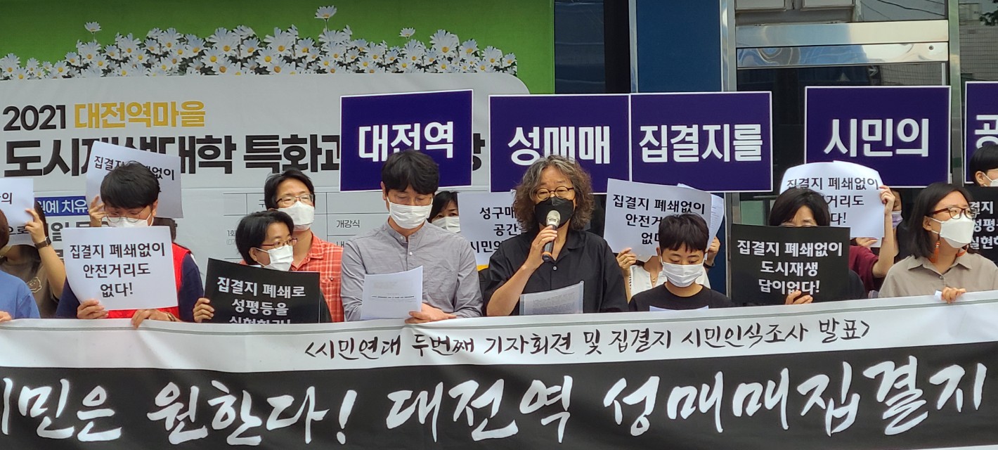 ½Ã¹Î¿¬´ë¿¡¼ ½Ç½ÃÇÑ ¡®´ëÀü¿ª ¼º¸Å¸ÅÁý°áÁö¿¡ ´ëÇÑ ´ëÀü½Ã¹Î ÀνÄÁ¶»ç¡¯¿¡ µû¸£¸é ¼³¹®¿¡ Âü¿©ÇÑ ´ëÀü½Ã¹ÎÀÇ 75%°¡ ¡®´ëÀü¿ª ¼º¸Å¸ÅÁý°áÁöÀÇ Á¸À縦 ¾Ë°í ÀÖ´Ù¡¯°í ´äÇßÀ¸¸ç, 88%°¡ ´ëÀü¿ª ¼º¸Å¸ÅÁý°áÁö ¹®Á¦°¡ ¡®¸Å¿ì ½É°¢ÇÏ´Ù¡¯ ȤÀº ¡®½É°¢ÇÏ´Ù¡¯¶ó°í ´äº¯Çß´Ù. ¡®´ëÀü¿ª ¼º¸Å¸ÅÁý°áÁö¸¦ Æó¼âÇÏ´Â °Í¿¡ µ¿ÀÇÇÑ´Ù¡®´Â ÀÀ´äÀº Àüü ÀÀ´äÀÇ 93%³ª Â÷ÁöÇß´Ù. ´ëÀü½Ã¹ÎµéÀº ÀÌ¹Ì ´ëÀü¿ª Áý°áÁö¿¡ ´ëÇØ ¿©¼ºÀαǰú ¾ÈÀüÀÇ Ãø¸é¿¡¼ ½É°¢ÇÑ »ç¾ÈÀ¸·Î ÀÎÁöÇϰí ÀÖÀ¸¸ç, Áý°áÁö Æó¼â¿¡µµ Àû±ØÀûÀ¸·Î µ¿ÀÇÇϰí ÀÖ´Ù. ´Ü¼øÈ÷ Áý°áÁö Æó¼â¸¦ µ¿ÀÇÇÏ´Â °ÍÀ» ³Ñ¾î °ø°£Àû ´ë¾È ¸¶·Ã°ú Å»¼º¸Å¸Å ¿©¼ºµé¿¡ ´ëÇÑ Áö¿ø´ëÃ¥ÀÇ Çʿ伺±îÁö ÁöÀûÇϰí ÀÖ´Ù.