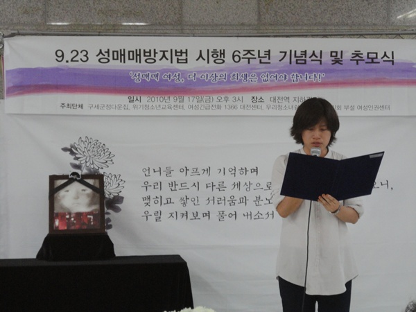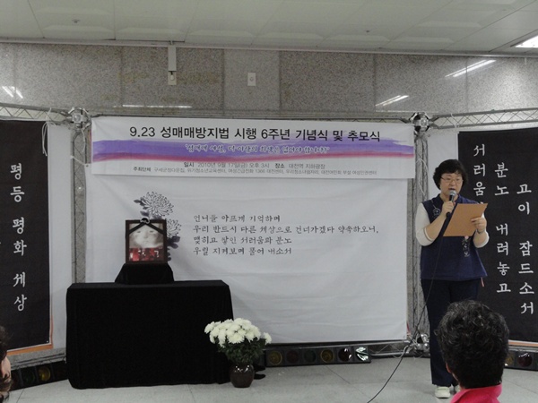´ëÀü¿©¹Îȸ ºÎ¼³ ¿©¼ºÀαǼ¾ÅÍ´Â 9.23¼º¸Å¸Å¹æÁö¹ý ½ÃÇà 6ÁÖ³âÀ» ±â³äÇÏ¿© 9¿ù 16ÀÏ(¸ñ)Àº ¡®±º»êÈÀçÂü»ç 10ÁÖ±â Ã߸ð ¹Îµé·¹ ¼ø·Ê´Ü ´ëÀüÁö¿ª Çà»ç¡¯, 9¿ù 17ÀÏ(±Ý)¿¡´Â ¼º¸Å¸Å±ÙÀý Ã߸ð½Ä ¹× Ä·ÆäÀÎÀ» ÁøÇàÇß´Ù.