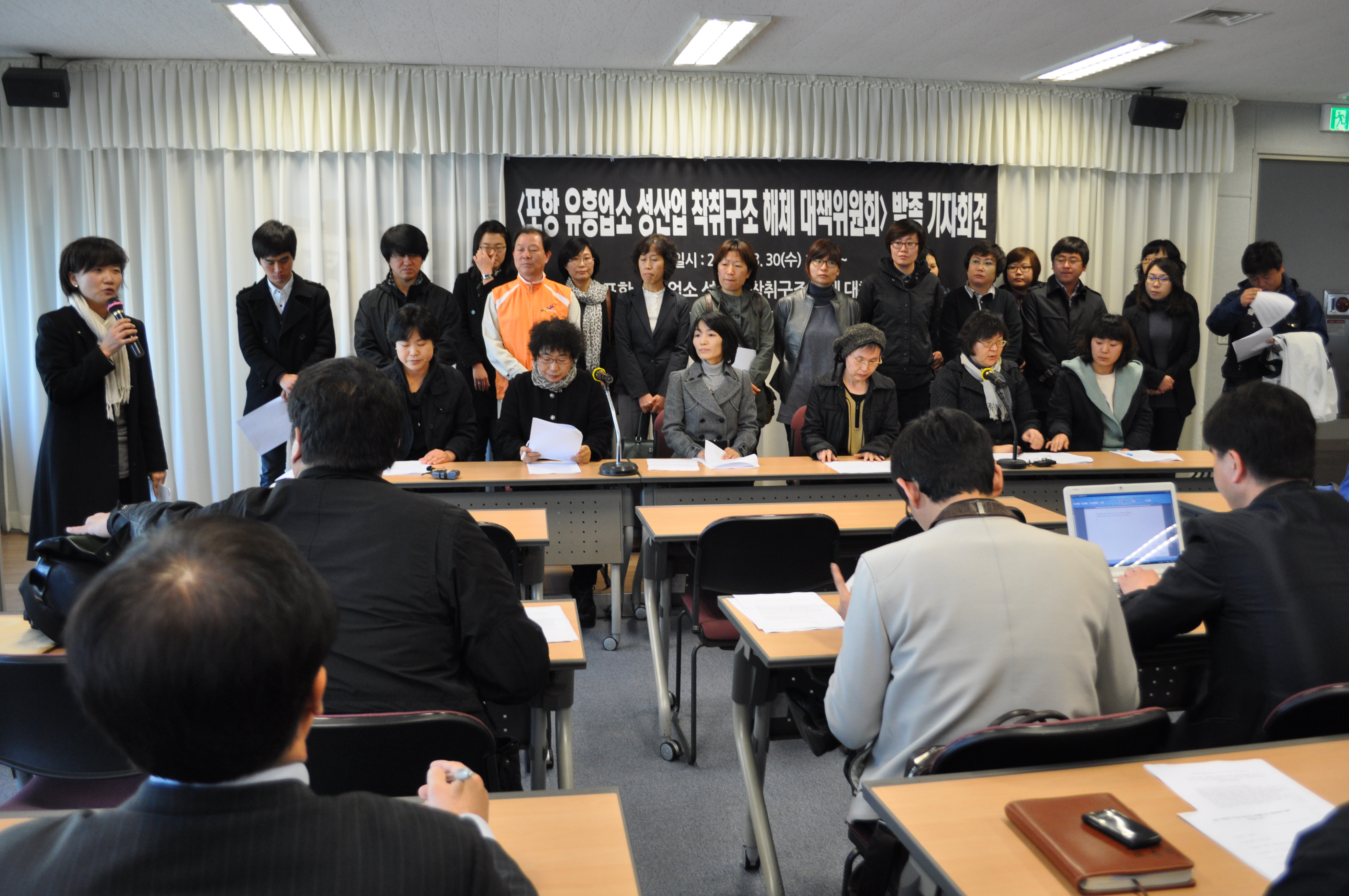 µ¿ÀÏÇÑ Áö¿ª(Æ÷Ç× ³²±¸ÀÇ À¯ÈïÁÖÁ¡)¿¡¼ ÀÏÇÏ´ø ¾÷¼Ò¿©¼ºµéÀÌ ÀÕ´Þ¾Æ Á×À½À¸·Î ³»¸ô¸®´Â »óȲ¼Ó¿¡¼, Á×À½À¸·Î ¹Û¿¡ ÀÚ½ÅÀÇ ¾ï¿ïÇÔÀ» È£¼ÒÇÒ ¼ö ¹Û¿¡ ¾ø¾ú´ø ¾ï¿ïÇÑ Á×À½µéÀ» ´õ ÀÌ»ó ÇêµÇÀÌ ÇØ¼´Â ¾ÈµÈ´Ù´Â 60¿©°³ ´ÜüµéÀÇ Àý¹ÚÇÑ ¸¶À½µéÀÌ ¸ð¿© Æ÷Ç×À¯Èï¾÷¼Ò ¼º»ê¾÷ÂøÃ뱸Á¶ ÇØÃ¼¸¦ À§ÇÑ ´ëÃ¥À§¿øÈ¸ °á¼ºÀ» °áÀÇÇÏ¿´½À´Ï´Ù.