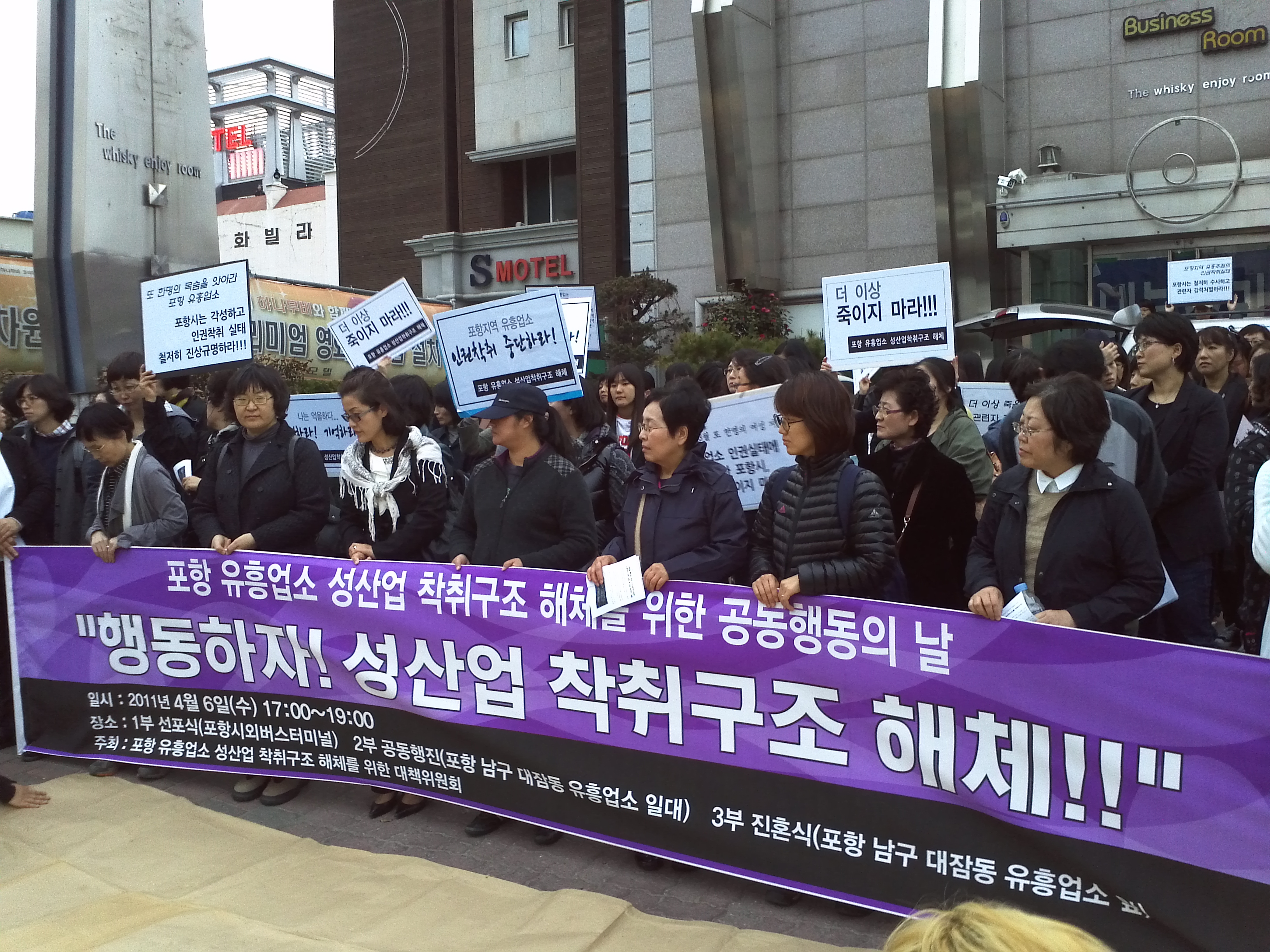 Æ÷Ç× À¯Èï¾÷¼Ò ¼º»ê¾÷ÂøÃ뱸Á¶ ÇØÃ¼¸¦ À§ÇÑ ´ëÃ¥À§¿øÈ¸´Â 4¿ù 6ÀÏ(¼ö) Æ÷Ç׽ÿܹö½ºÅ͹̳Î, ³²±¸ ´ëÀᵿ À¯Èï¾÷¼Ò ÀÏ´ë¿¡¼ <Æ÷Ç× À¯Èï¾÷¼Ò ¼º»ê¾÷ ÂøÃ뱸Á¶ ÇØÃ¼¸¦ À§ÇÑ °øµ¿ÇൿÀÇ ³¯> Çà»ç¸¦ °³ÃÖÇß½À´Ï´Ù. Àü±¹ÀÇ ¿©¼ºÀαǴÜü¿Í ½Ã¹Î´Üü µî 70¿©°³ ´Üü·Î ±¸¼ºµÈ ´ëÃ¥À§´Â 4¿ù 6ÀÏÀ» °øµ¿ÇൿÀÇ ³¯·Î Á¤Çϰí Àüü 3ºÎÀÇ Çà»ç¸¦ ÁøÇàÇÏ¿´½À´Ï´Ù. 1ºÎÇà»ç´Â Æ÷Ç× ½Ã¿Ü¹ö½ºÅ͹̳ο¡¼ °øµ¿Çൿ ¼±Æ÷½ÄÀ», 2ºÎ´Â Æ÷Ç× À¯Èï¾÷¼Ò Àϴ븦 °øµ¿ ÇàÁøÇϰí, 3ºÎ¿¡¼´Â À̹ø¿¡ »ç°ÇÀÌ ¹ß»ýÇÑ ¾÷¼Ò ¾Õ¿¡¼ Ã߸ð ÁøÈ¥Á¦¸¦ Áö³Â½À´Ï´Ù.