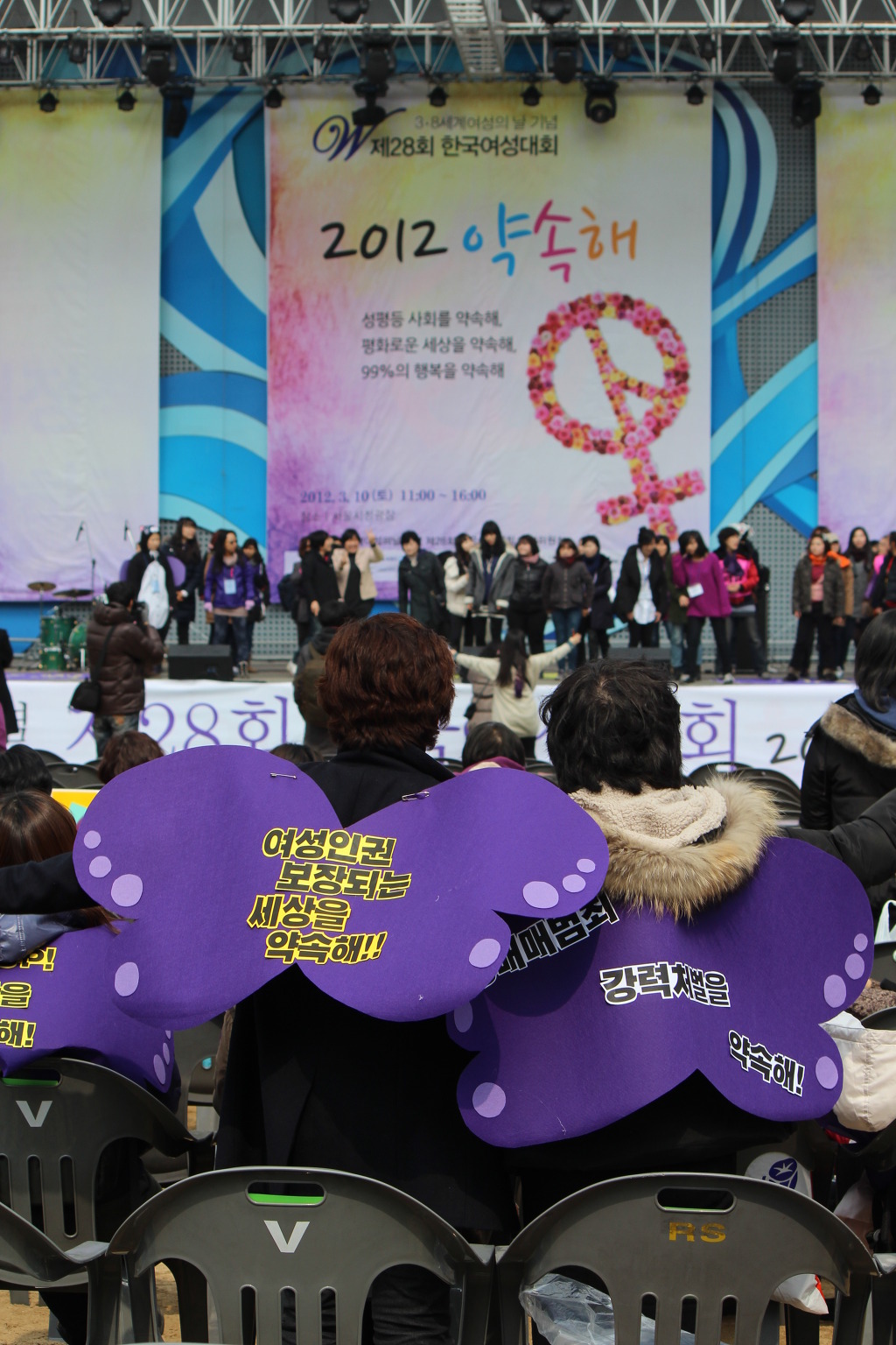 Áö³ 3¿ù 10ÀÏ(Åä), ¡®¼¼°è ¿©¼ºÀÇ ³¯¡¯±â³ä Á¦ 28 ȸ Çѱ¹¿©¼º´ëȸ´Â ¼¿ï½Ãû±¤Àå°ú ¼¿ï¿ª ÀÏ´ë¿¡¼ ÁøÇàµÇ¾úÀ¸¸ç ¿©¼ºÀÎ±ÇÆ¼¿òÀ» ºñ·ÔÇÏ¿© ´ëÀü¿©¼º´Üü¿¬ÇÕȸ¿ø 70¿©¸í, ±×¸®°í °¢ Áö¿ªÀÇ ¿©¼º¿îµ¿´Üü Ȱµ¿°¡µéÀÌ Âü¿©ÇÏ¿´´Ù. '¼¼°è ¿©¼ºÀÇ ³¯'Àº 1908³â ¹Ì±¹ÀÇ 1¸¸ 5õ¿© ¿©¼º ¼¶À¯³ëµ¿ÀÚµéÀÌ Á¤Ä¡Àû Æòµî±Ç ÀïÃë¿Í ³ëµ¿Á¶ÇÕ °á¼º, ÀÓ±Ý ÀλóÀ» ¿ä±¸ÇÏ¸ç ½ÃÀ§¸¦ ¹úÀÎ ³¯À» ±â³äÇØ Á¦Á¤ÇÑ ³¯ÀÌ´Ù. ÀÌÈÄ ¿©¼ºµéÀÇ ±¹Á¦ÀûÀÎ ¿¬´ë ¿îµ¿ÀÌ È°¹ßÇØÁö¸é¼ °¢±¹¿¡¼ ¿©¼ºµéÀÇ ÁöÀ§Çâ»ó°ú ³²³àÂ÷º° öÆó, ¿©¼ººó°ï ŸÆÄ µî ¿©¼º¿îµ¿ÀÌ È°±â¸¦ ¶ì±â ½ÃÀÛÇØ 2012³â ÇöÀç±îÁö ¸Å³â 3¿ù 8ÀÏ¿¡ ¼¼°èÀûÀ¸·Î ±â³ä´ëȸ°¡ À̾îÁ®¿À°í ÀÖ´Ù.