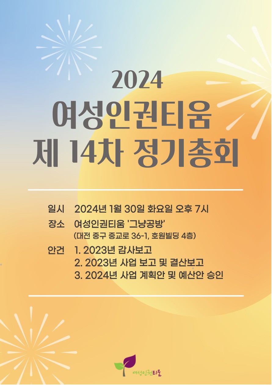 [°øÁö] ¿©¼ºÀÎ±ÇÆ¼¿ò Á¦ 14Â÷ Á¤±âÃÑȸ¿¡ ÃÊ´ëÇÕ´Ï´Ù!