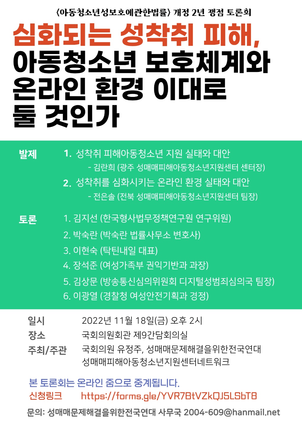 - ÁÖÃÖ : À¯Á¤ÁÖ ±¹È¸ÀÇ¿ø, ¼º¸Å¸Å¹®Á¦ÇذáÀ»À§ÇÑÀü±¹¿¬´ë ¼º¸Å¸ÅÇÇÇØ¾Æµ¿Ã»¼Ò³âÁö¿ø¼¾ÅÍ³×Æ®¿öÅ©