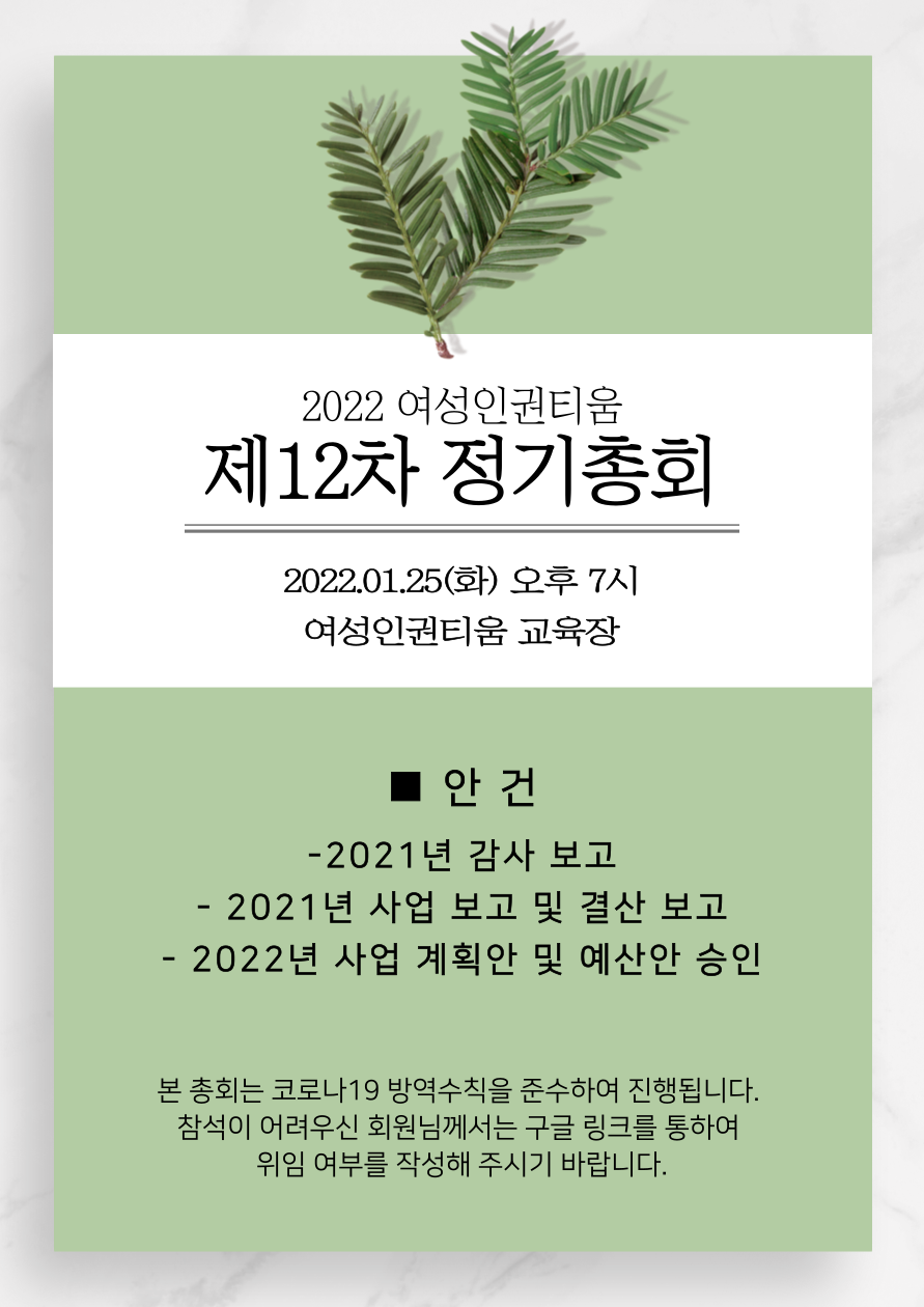 2022³â Á¦12Â÷ Á¤±âÃÑȸ¸¦ ¾Ë¸³´Ï´Ù.