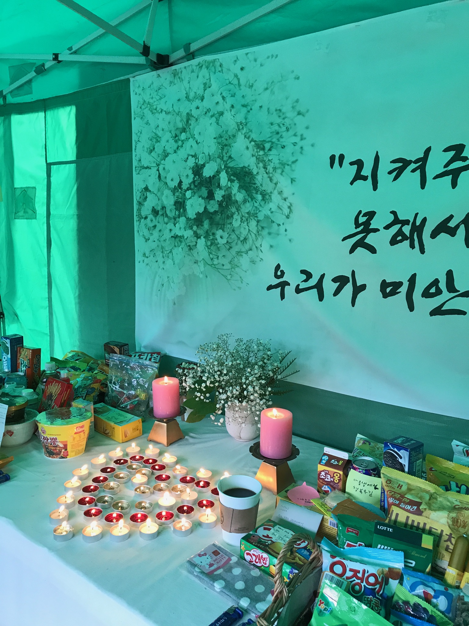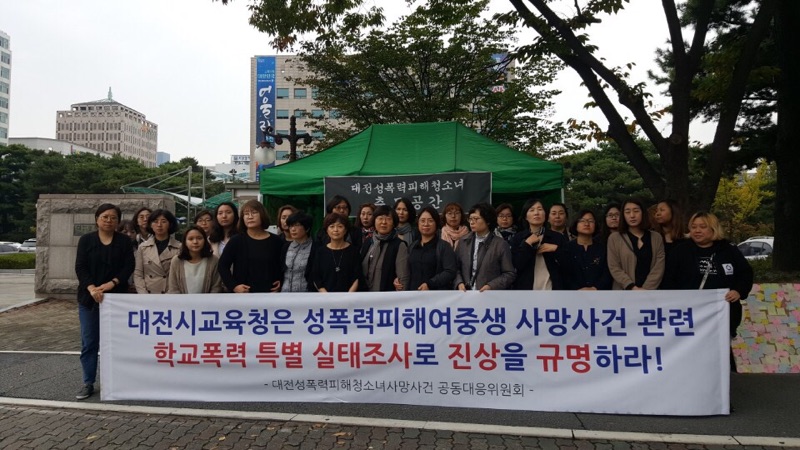 ±×³¯ ÀÌÈÄ ¼ºÆø·ÂÇÇÇØ¿©Áß»ýÀÌ Åõ½ÅÇÑ °Ç¹° ¾Æ·¡¿¡´Â Ä£±¸µé°ú ÀÌ¿ôµéÀÌ Ã»¼Ò³à¸¦ Ã߸ðÇϱâ À§ÇØ °¡Á®´Ù ³õÀº ²É°ú ÆíÁöµéÀÌ ³ª³¯ÀÌ ½×¿´½À´Ï´Ù. ¿ì¸®´Â ÀÌ·¯ÇÑ »ç°ÇÀÌ Àç¹ßµÇÁö ¾Ê±â¸¦ ¹Ù¶ó´Â ½Ã¹ÎµéÀÇ ¾Öµµ¸¦ À̾¸é¼, ¼Ò³àÀÇ Á×À½¿¡ ´ëÇÑ »çȸÀû Ã¥ÀÓÀ» ¹¯°í ´ë¾ÈÀ» ¸¶·ÃÇϴµ¥ Àǹ̸¦ µÎ°í 9¿ù6ÀϺÎÅÍ ´ëÀü½Ã±³À°Ã» ¾ÕÀ¸·Î Ãß¸ð°ø°£À» ¿Å°Ü¼ ÇÇÇØ¿©Áß»ýÀÌ »ç¸ÁÇÑÁö 49ÀÏÀÌ µÇ´Â ³¯±îÁö Ãß¸ð°ø°£À» À¯ÁöÇÏ¿´½À´Ï´Ù. Áö³ 10¿ù 12ÀÏÀº Áöµ¿À̰¡ ¶°³Áö 49ÀÏÀÌ µÇ´Â ³¯À̾ú°í ¿©¼ºÀÎ±ÇÆ¼¿ò°ú ´ëÀü¼ºÆø·Â»ó´ã¼Ò, ¿©¼º´Üü¿¬ÇÕ, ¿©¼ºÆø·Â¹æÁö»ó´ã¼Ò ½Ã¼³ÇùÀÇȸ Ȱµ¿°¡ 30¿©¸íÀº 11½Ã¿¡ Ãß¸ð°ø°£¿¡ ¸ð¿© Áöµ¿À̰¡ ÁÁ¾ÆÇß´Ù´Â ¾È°³²ÉÀ» ²È°í, ÃкÒÀ» ÄѰí Ã߸ðÀÇ ½Ã°£À» °¡Á³½À´Ï´Ù.