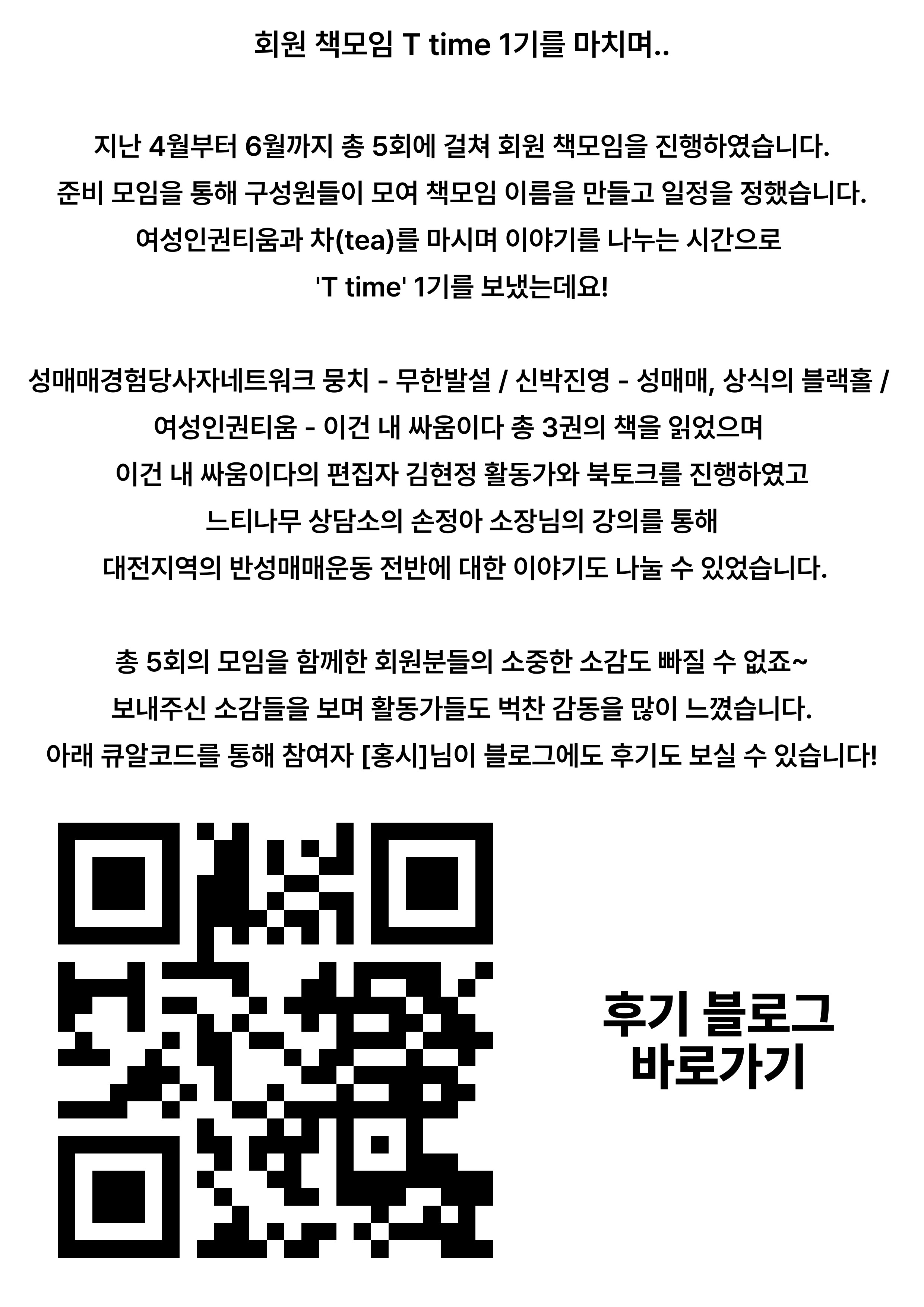 [¿©¼ºÀÎ±ÇÆ¼¿ò] ȸ¿øÃ¥¸ðÀÓ T time 1±â¸¦ ¸¶Ä¡¸ç..