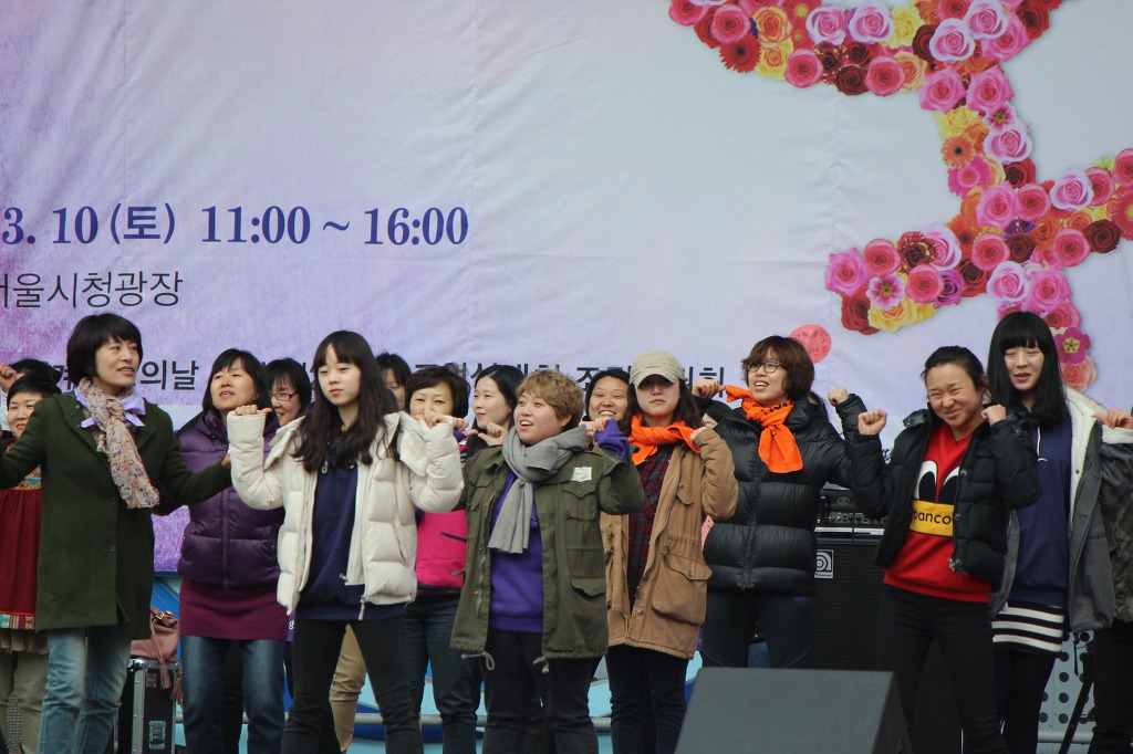 Áö³ 3¿ù 10ÀÏ(Åä), ¡®¼¼°è ¿©¼ºÀÇ ³¯¡¯±â³ä Á¦ 28 ȸ Çѱ¹¿©¼º´ëȸ´Â ¼¿ï½Ãû±¤Àå°ú ¼¿ï¿ª ÀÏ´ë¿¡¼ ÁøÇàµÇ¾úÀ¸¸ç ¿©¼ºÀÎ±ÇÆ¼¿òÀ» ºñ·ÔÇÏ¿© ´ëÀü¿©¼º´Üü¿¬ÇÕȸ¿ø 70¿©¸í, ±×¸®°í °¢ Áö¿ªÀÇ ¿©¼º¿îµ¿´Üü Ȱµ¿°¡µéÀÌ Âü¿©ÇÏ¿´´Ù. '¼¼°è ¿©¼ºÀÇ ³¯'Àº 1908³â ¹Ì±¹ÀÇ 1¸¸ 5õ¿© ¿©¼º ¼¶À¯³ëµ¿ÀÚµéÀÌ Á¤Ä¡Àû Æòµî±Ç ÀïÃë¿Í ³ëµ¿Á¶ÇÕ °á¼º, ÀÓ±Ý ÀλóÀ» ¿ä±¸ÇÏ¸ç ½ÃÀ§¸¦ ¹úÀÎ ³¯À» ±â³äÇØ Á¦Á¤ÇÑ ³¯ÀÌ´Ù. ÀÌÈÄ ¿©¼ºµéÀÇ ±¹Á¦ÀûÀÎ ¿¬´ë ¿îµ¿ÀÌ È°¹ßÇØÁö¸é¼ °¢±¹¿¡¼ ¿©¼ºµéÀÇ ÁöÀ§Çâ»ó°ú ³²³àÂ÷º° öÆó, ¿©¼ººó°ï ŸÆÄ µî ¿©¼º¿îµ¿ÀÌ È°±â¸¦ ¶ì±â ½ÃÀÛÇØ 2012³â ÇöÀç±îÁö ¸Å³â 3¿ù 8ÀÏ¿¡ ¼¼°èÀûÀ¸·Î ±â³ä´ëȸ°¡ À̾îÁ®¿À°í ÀÖ´Ù.