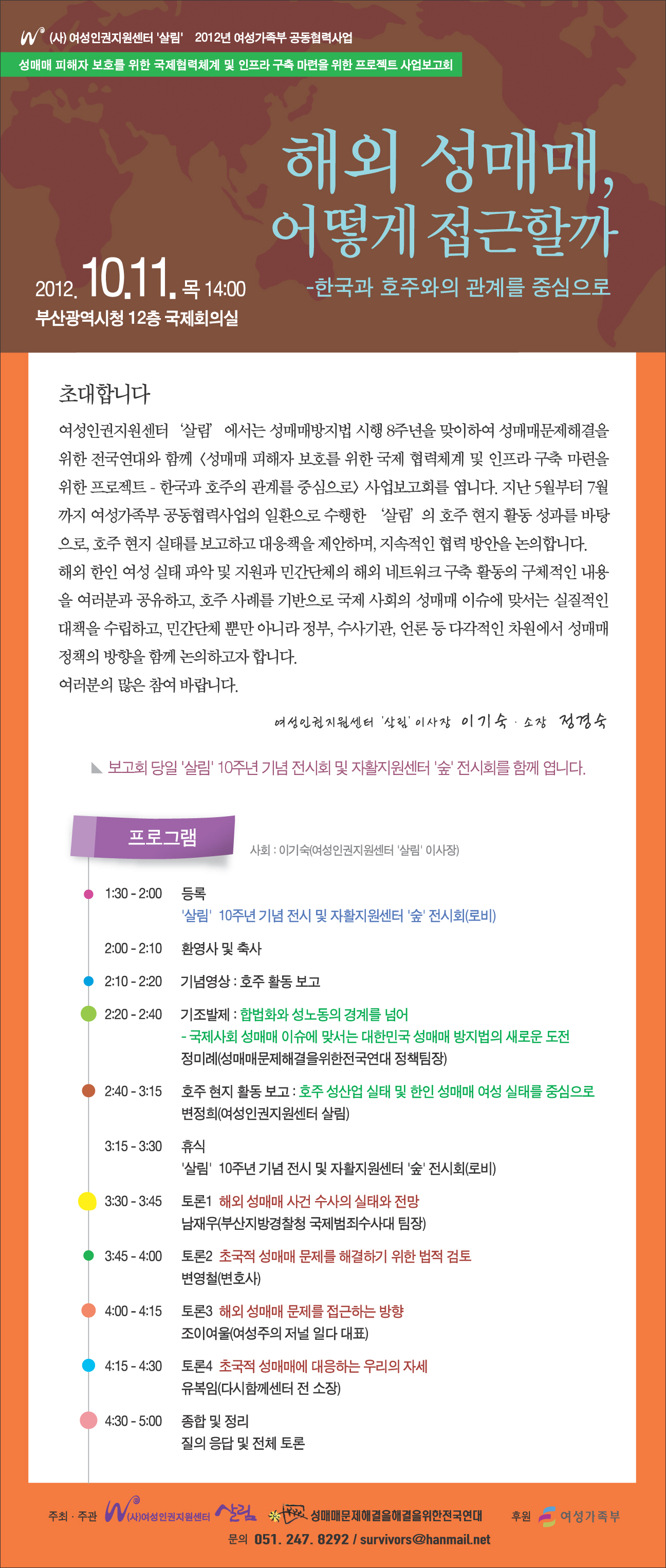 ¼º»ê¾÷ÀÇ ¼¼°èÈ·Î ÀÎÇØ ÇØ¿Ü ¼º¸Å¸Å¿©¼ºµéÀ» Áö¿øÇϱâ À§ÇÑ ¿¬°è¸Á ±¸ÃàÀÌ Àý½ÇÇØ Á³´Ù. ÀÌ·¯ÇÑ Çʿ信¼ ¼º¸Å¸ÅÇÇÇØÀÚº¸È£¸¦ À§ÇÑ ±¹Á¦Çù·Âü°è ¹× ÀÎÇÁ¶ó±¸Ãà ÇÁ·ÎÁ§Æ®´Â Áö³ 4¿ù 30ÀϺÎÅÍ 3°³¿ù¿©ÀÇ ÂªÀº ±â°£ µ¿¾È ¿©¼ºÀαÇÁö¿ø¼¾ÅÍ »ì¸²°ú ¼º¸Å¸Å¹®Á¦ÇذáÀ»À§ÇÑÀü±¹¿¬´ë, ¿©¼º°¡Á·ºÎ ÁÖ°üÀ¸·Î È£ÁÖ ³» ¸á¹ø, ÆÛ½º, ½Ãµå´Ï µî ÁÖ¿äµµ½Ã¿¡¼ ÇÑÀÎ ¿©¼º Áö¿ø ÀÎÇÁ¶ó °È¸¦ À§ÇÑ ±â°ü¹æ¹®°ú ¿¬°è¸Á±¸Ãà, ¹ÝÀνŸŸŴÜü ´ë»ó ±³À° ÇÁ·Î±×·¥ °³¹ß, È£ÁÖ ³» ÇÑÀο©¼º½ÇÅ¿¡ °üÇÑ ¹Î°£Â÷¿øÀÇ ½ÉÃþ ½ÇÅÂÁ¶»ç¿Í ¾Æ¿ô¸®Ä¡, ¿©¼ºµéÀÇ ¿å±¸¸¦ ÆÄ¾ÇÇϰí Áö¿ø¹æÇâÀ» ¸ð»öÇÏ´Â µîÀÇ ¿Á¤ÀûÀΠȰµ¿À» Àü°³ÇÏ¿´´Ù.