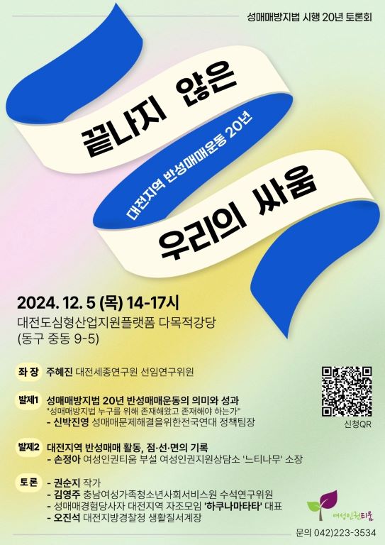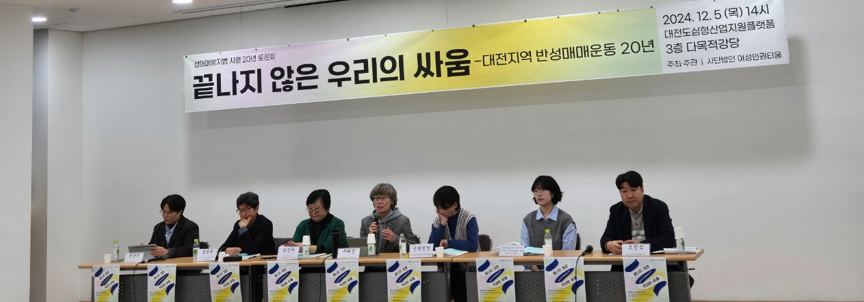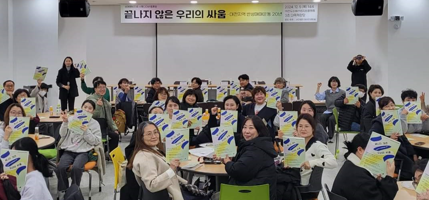 Ƽ¿ò Ȱµ¿°¡µéÀº 2024³â ÇÑ ÇØ µ¿¾È ±×µ¿¾ÈÀÇ È°µ¿ÀÚ·áµéÀ» ¸ðÀ¸°í Á¤¸®ÇÏ´Â ÀÛ¾÷µéÀ» ««È÷ ÁøÇàÇÏ¿´´Ù. ºÎÁ·ÇÑ ³»¿ëÀÌÁö¸¸ ÇØ¸¦ ³Ñ±æ ¼ö ¾ø¾î 12¿ù 5ÀÏ, 2½ÃºÎÅÍ 5½Ã±îÁö ´ëÀüµµ½ÉÇü»ê¾÷Áö¿øÇ÷§Æû ´Ù¸ñÀû °´ç¿¡¼ Ƽ¿òÀÇ È¸¿ø°ú ½Ã¹Î 80 ¿©ºÐ°ú ÇÔ²² ¼º¸Å¸Å¹æÁö¹ý 20³â Åä·Ðȸ ¡®´ëÀüÁö¿ª ¹Ý¼º¸Å¸Å¿îµ¿ 20³â ³¡³ªÁö ¾ÊÀº ¿ì¸®ÀÇ ½Î¿ò¡¯À» ÁøÇàÇÏ¿´´Ù. ¼º¸Å¸Å°æÇè´ç»çÀÚ ´ëÀüÁö¿ª ÀÚÁ¶¸ðÀÓ, ´ëÀü°æÂû, ¿©¼ºÁ¤Ã¥°ú ¹®È ¿¬±¸ÀÚ, ¾ð·Ð»ç, Áö¿ª¿¡¼ ÇÔ²² Ȱµ¿Çϰí ÀÖ´Â ¿©¼ºº¹Áö, ÀαÇ, û¼Ò³â, ¿¹¼ú°¡µé°ú îñ Ƽ¿òȰµ¿°¡µé¿¡ À̸£±â±îÁö ¸¹Àº ºÐµéÀÇ °ü½É°ú ÀÀ¿ø ¼Ó¿¡ µûµíÇÑ ÈûÀ» ¹Þ´Â ½Ã°£À̾ú´Ù.